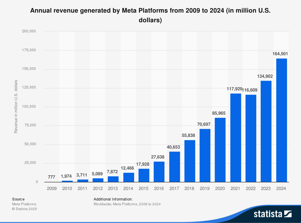 这种底层的用户ID 无法获取的问题,导致meta 广告效果大幅下降,让Meta 的收入在2022年出现罕见的同比 下跌1.7% (谷歌同期同比 上涨7.1% 🫥)。